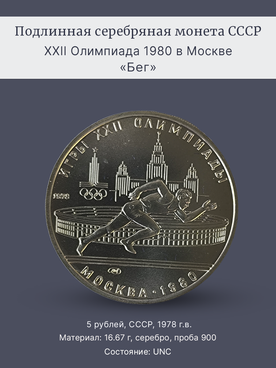 Монета 5 рублей СССР 1978 год "Олимпиада 1980 в Москве-Бег" – купить за 6 460 ₽ | Антикварный магазин и скупка Морулус Нижний Новгород