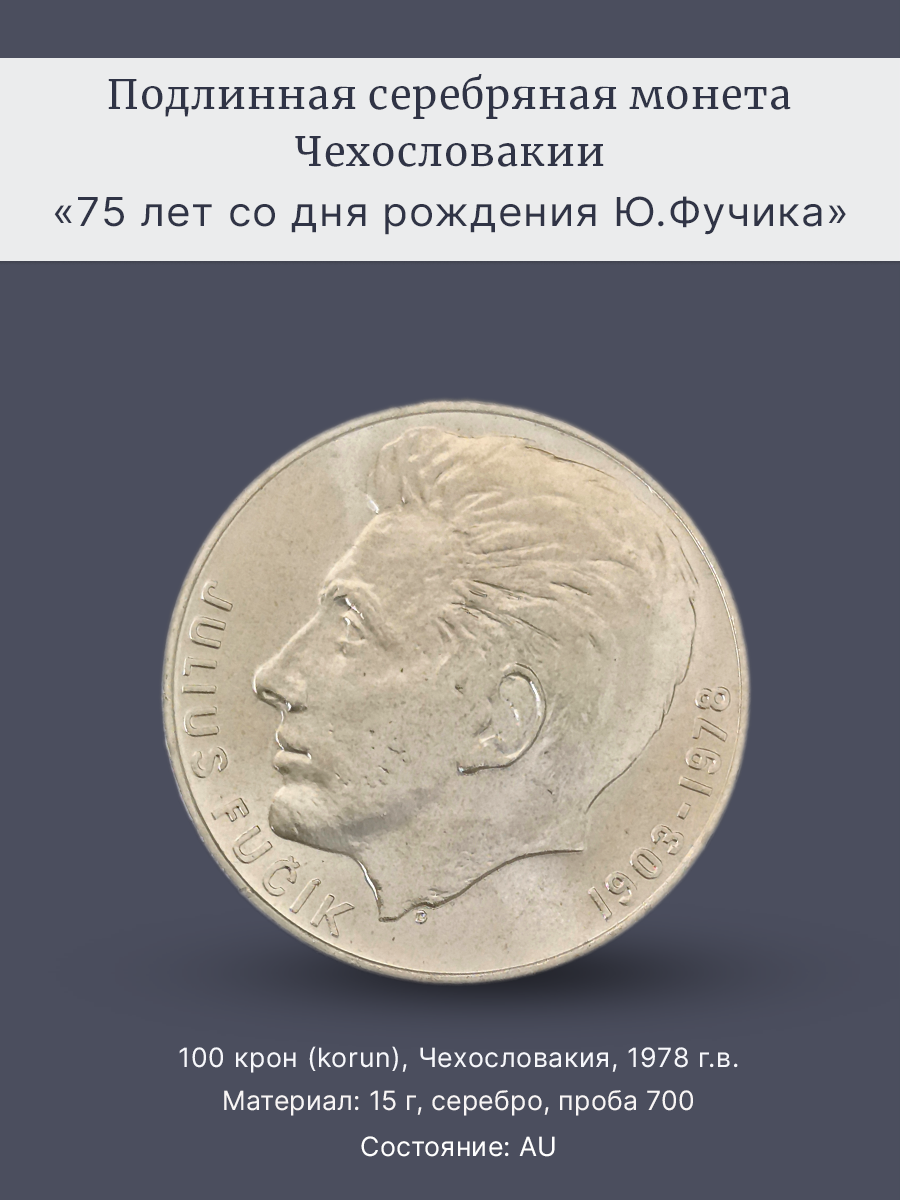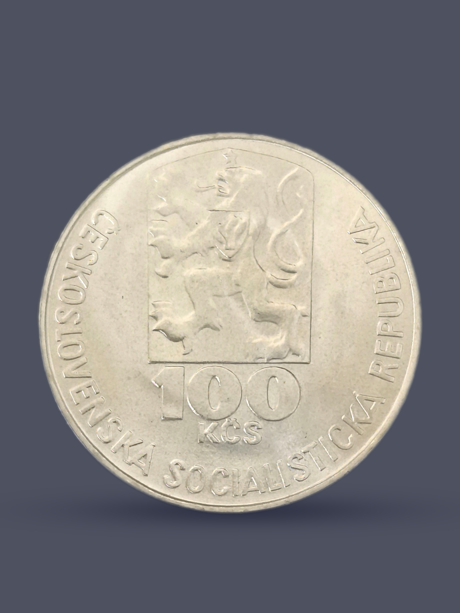 Подлинная серебряная монета Чехословакии достоинством 100 крон (korun) 1978 год.