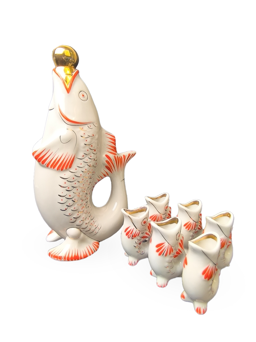 Фарфоровый Набор для крепких напитков "Рыба" (штоф и 6 стопок).