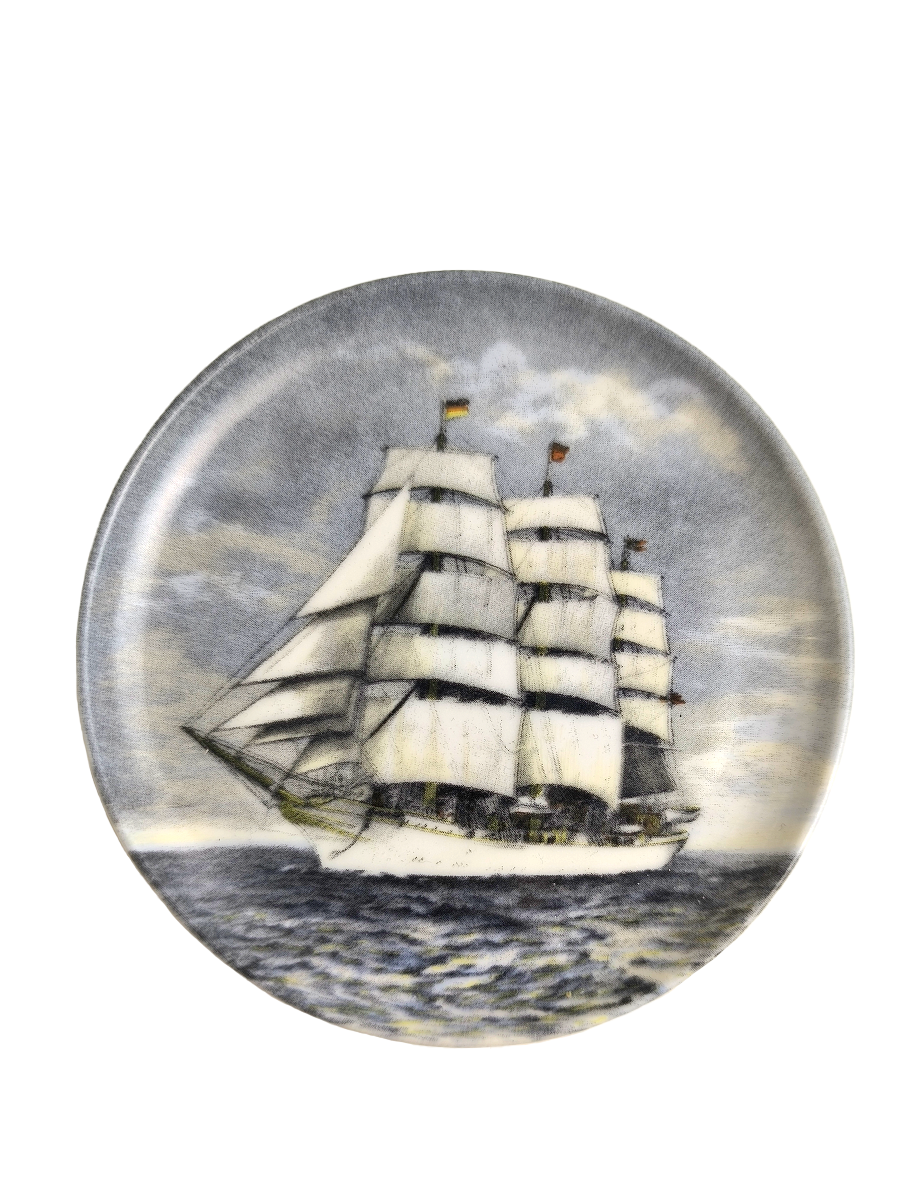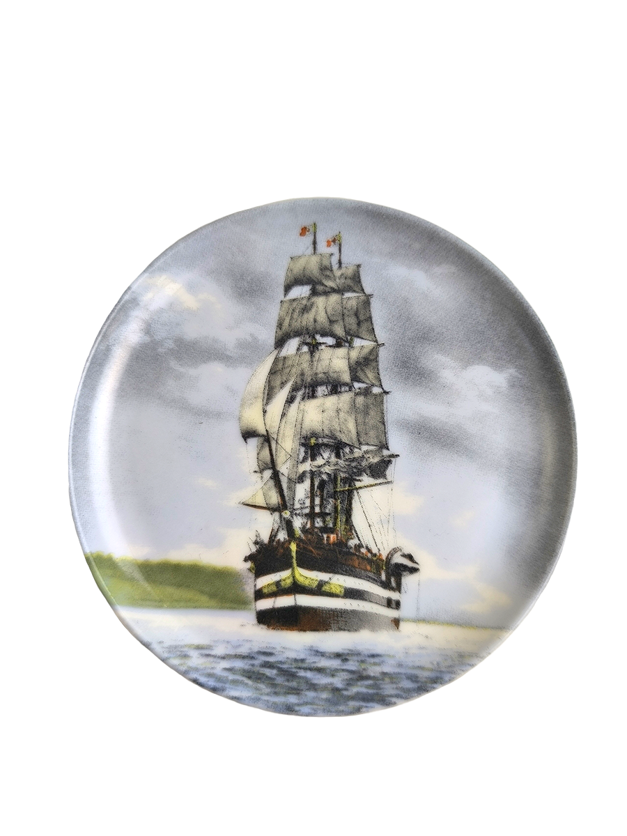 На тарелках (блюдцах) изображены знаменитые парусники, такие как: