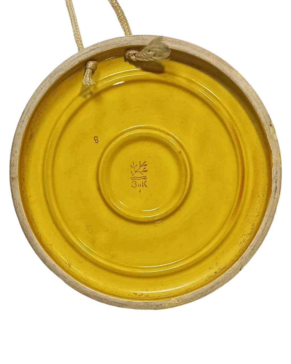 Панно настенное "Олимпийский мишка - тяжелая атлетика, Олимпиада - 80", фаянс, деколь, Конаковский фаянсовый завод им. М.И. Калинина (ЗиК Конаково), СССР, 1980 г.