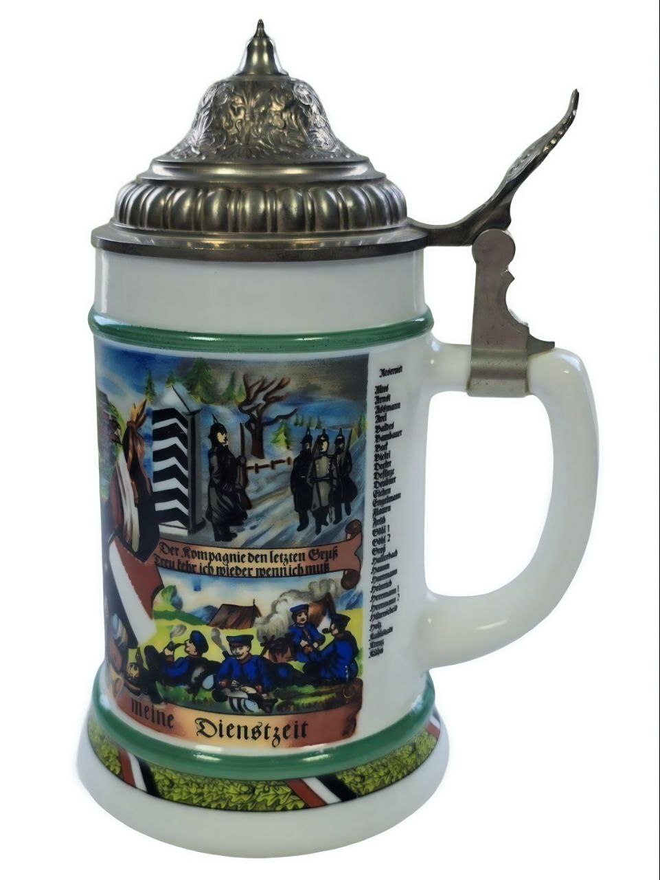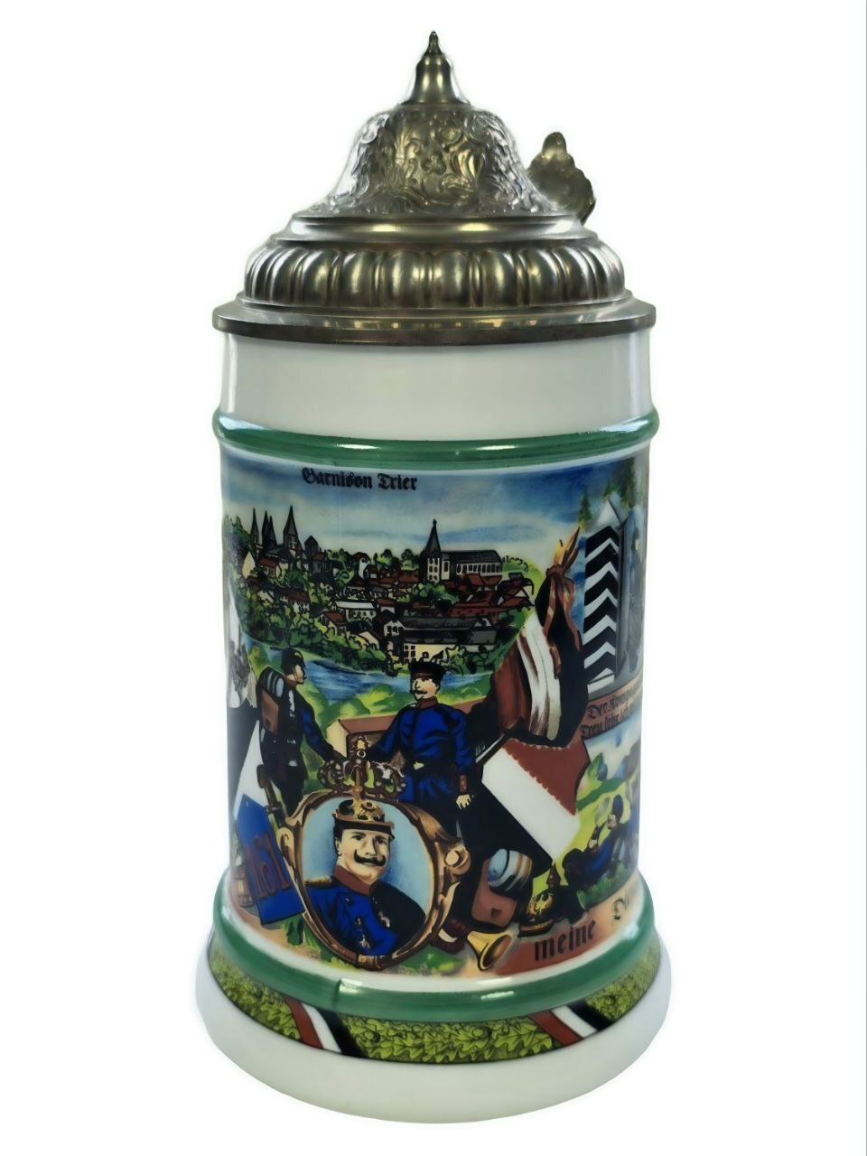 Пивная кружка Германии BMF BIERSEIDEL "Резервиста" (161 кавалерийский полк) с оловянной крышкой.