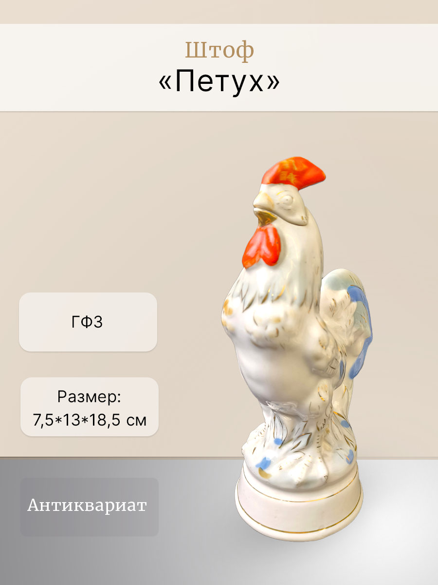 Штоф в виде петуха, Городницкий фарфоровый завод, СССР, 1955 - 1959 гг.