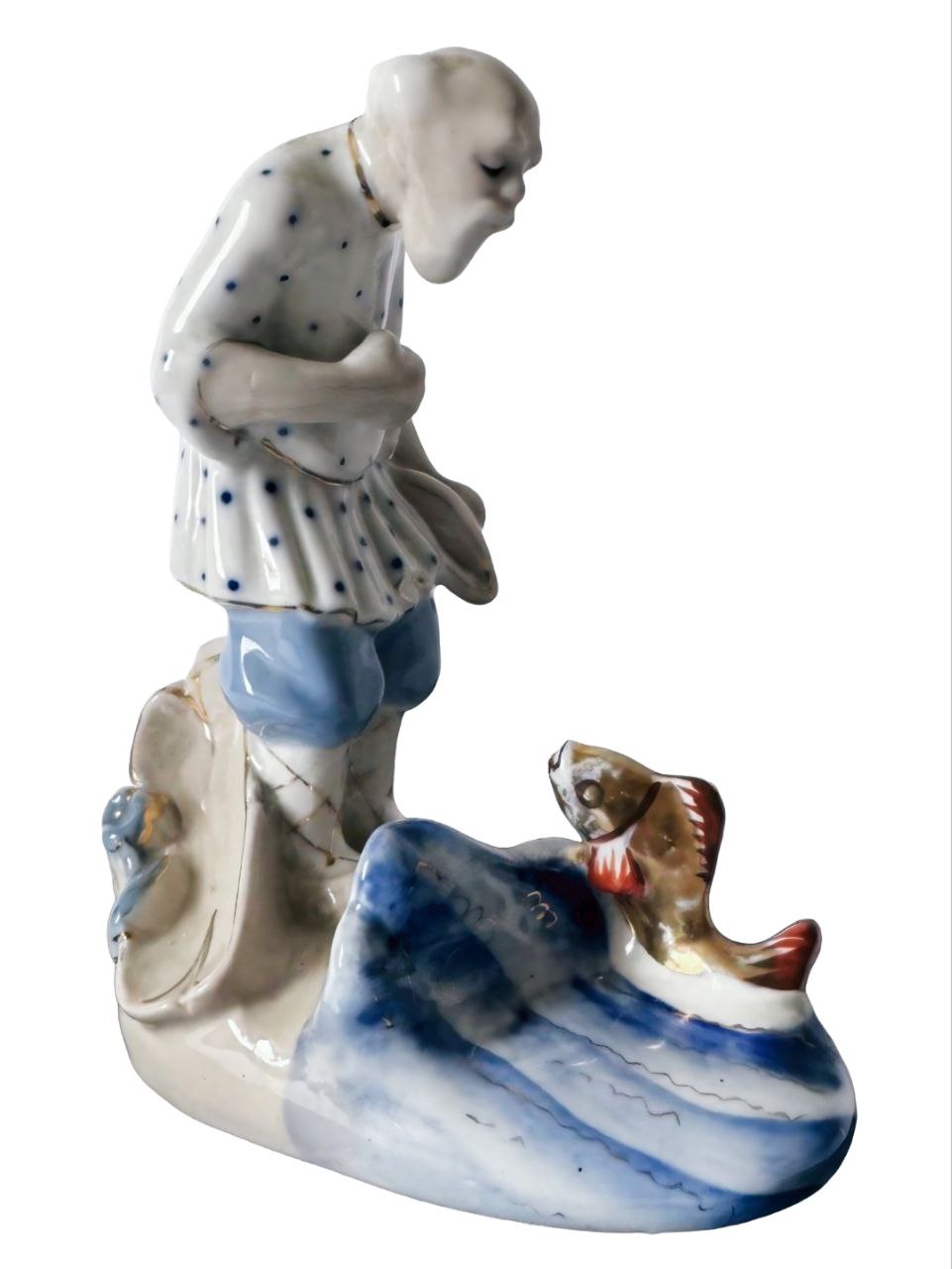 Фарфоровая статуэтка "Старик и золотая рыбка".