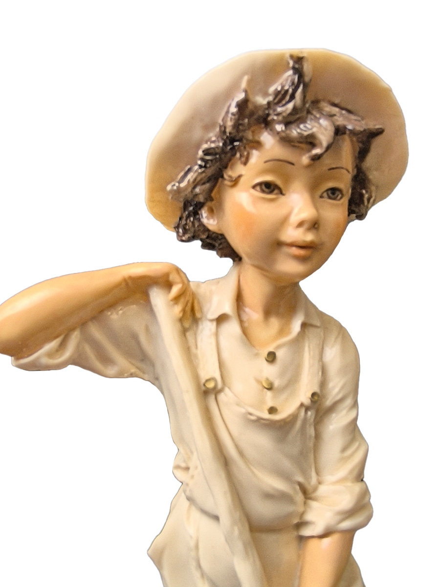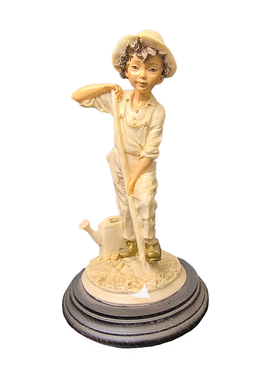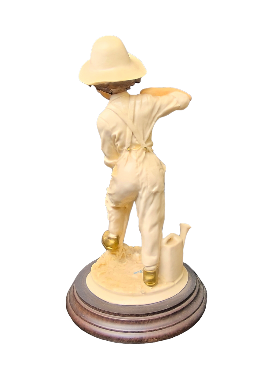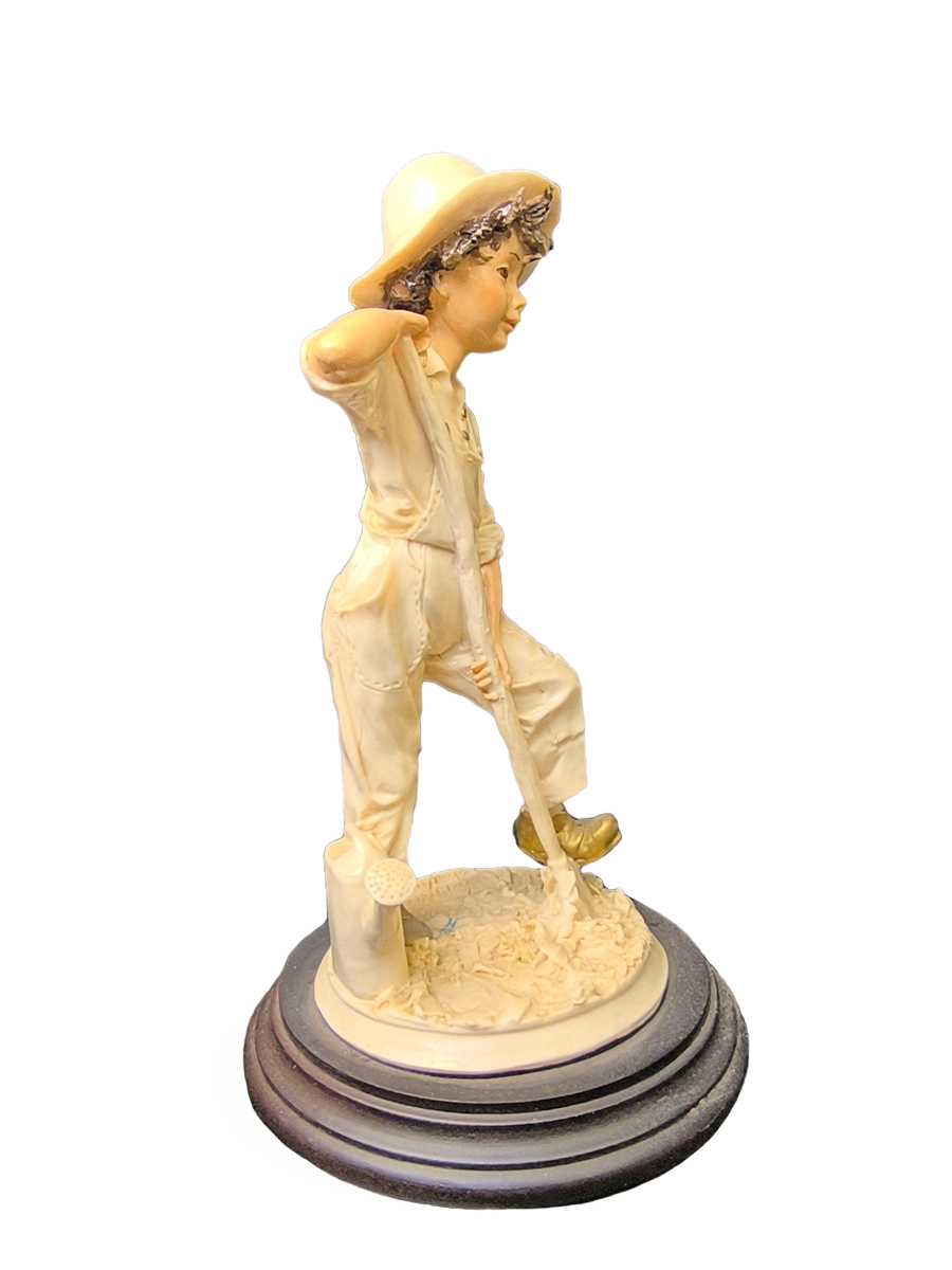 Изумительная итальянская статуэтка мальчика садовника, бисквитный фарфор молочного оттенка, великолепная ручная работа от талантливого скульптора.