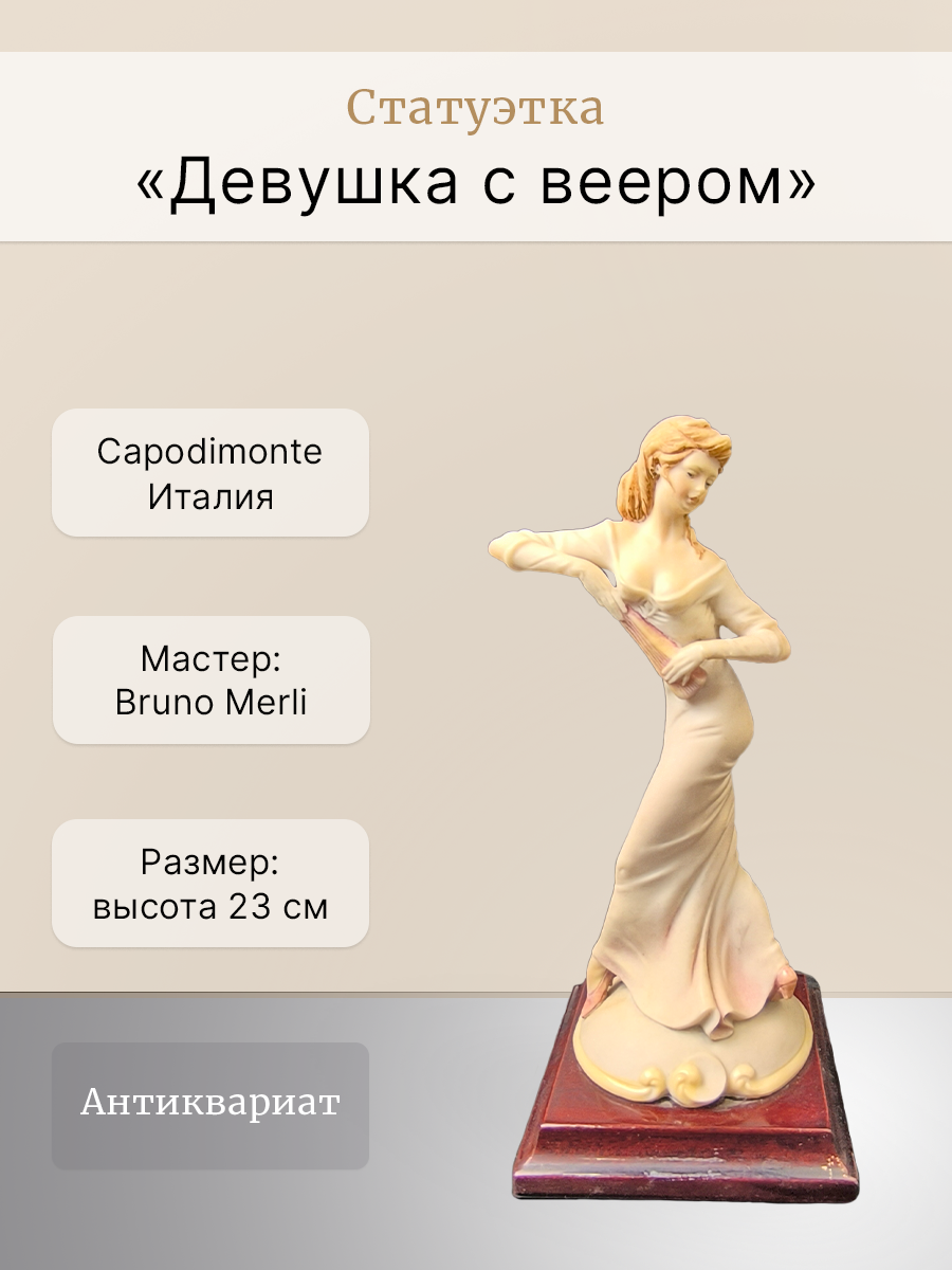 Бруно Мерли (Bruno Merli) — искусный скульптор, а Каподимонте — синоним исключительного мастерства . Каждая деталь этой фигурки исполнена с точностью и изяществом — идеальное дополнение для любой коллекции, ценящей итальянский дизайн и художественное совершенство.