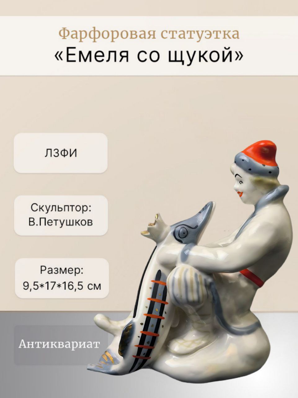 Фарфоровая статуэтка "Емеля со щукой" ("По щучьему велению").