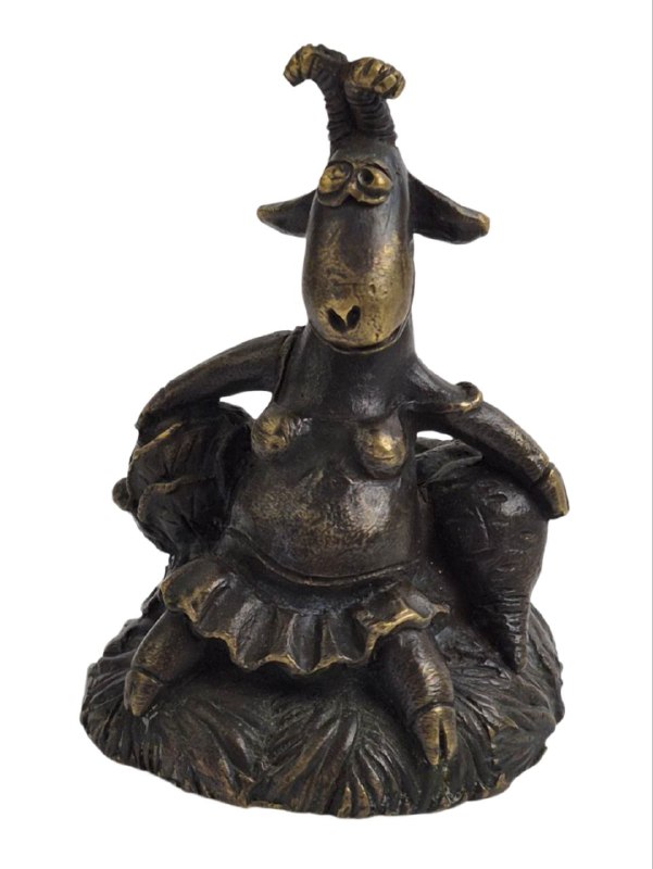 Юмористическая или гротескная миниатюра. Фигурка изображает антропоморфную козу в юбке, держащую кочан капусты.
