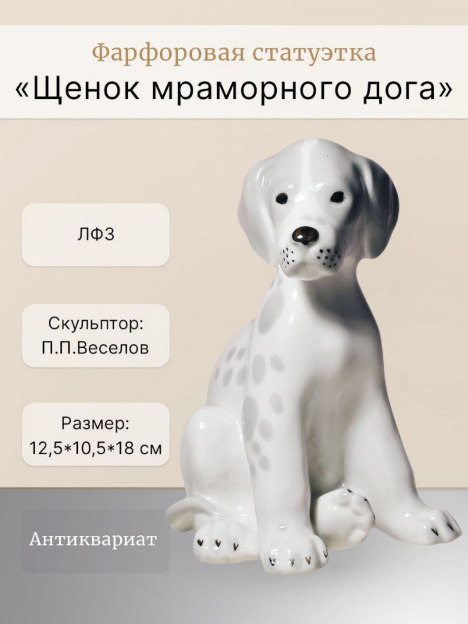 Фарфоровая статуэтка "Щенок мраморного дога".