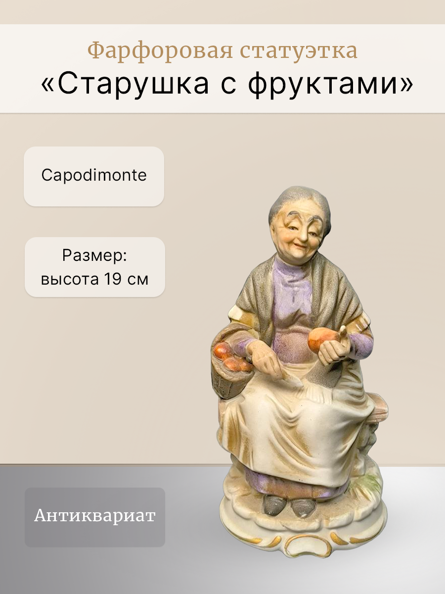 Фарфоровая статуэтка "Старушка с фруктами" или "Бабушка чистит яблоки" Capodimonte.