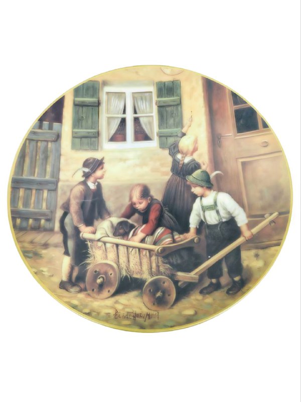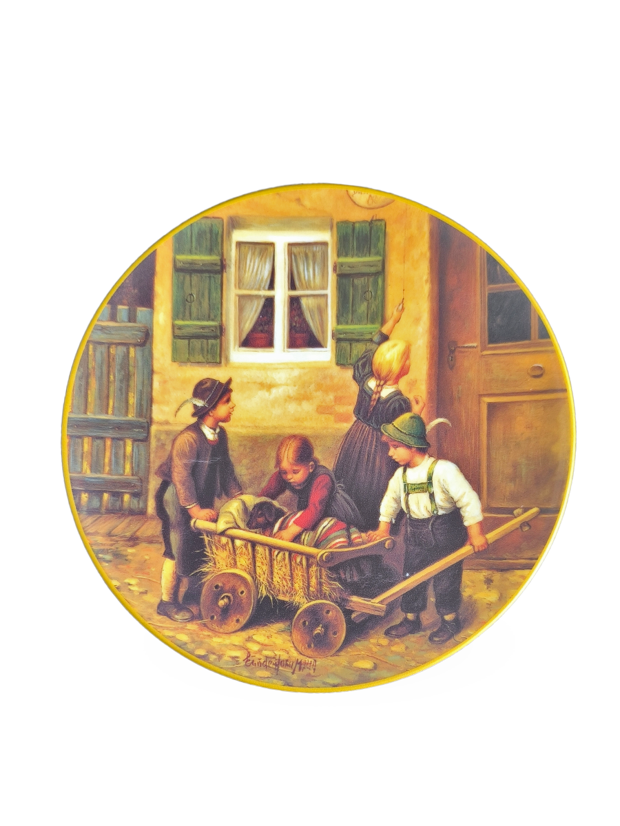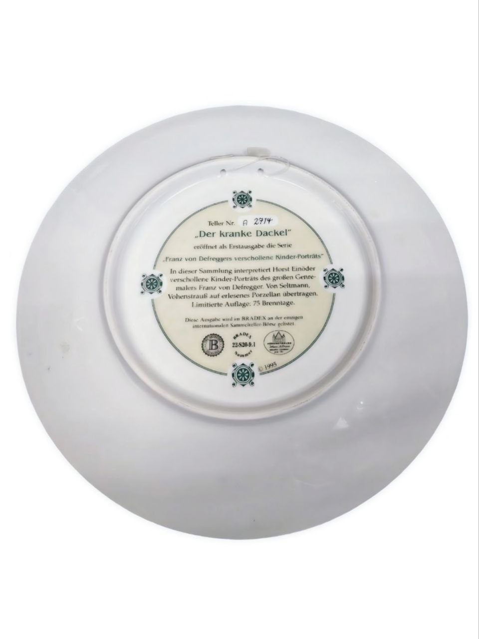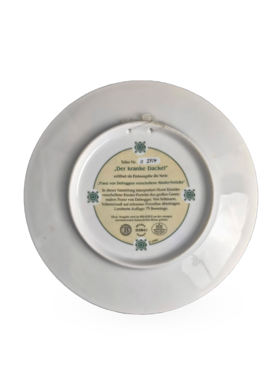 Первая тарелка из серии под названием "Утерянные детские портреты" (нем. "Verschollene Kinder-Porträts") являющаяся репродукцией картины Франца фон Дефреггера.