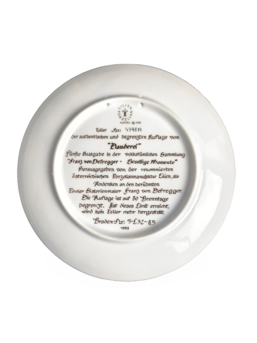 Пятая тарелка из серии "Gesellige Momente" (Общительные моменты), выпущенной ограниченным тиражом компанией Lilien Porcelain в 1993 году.