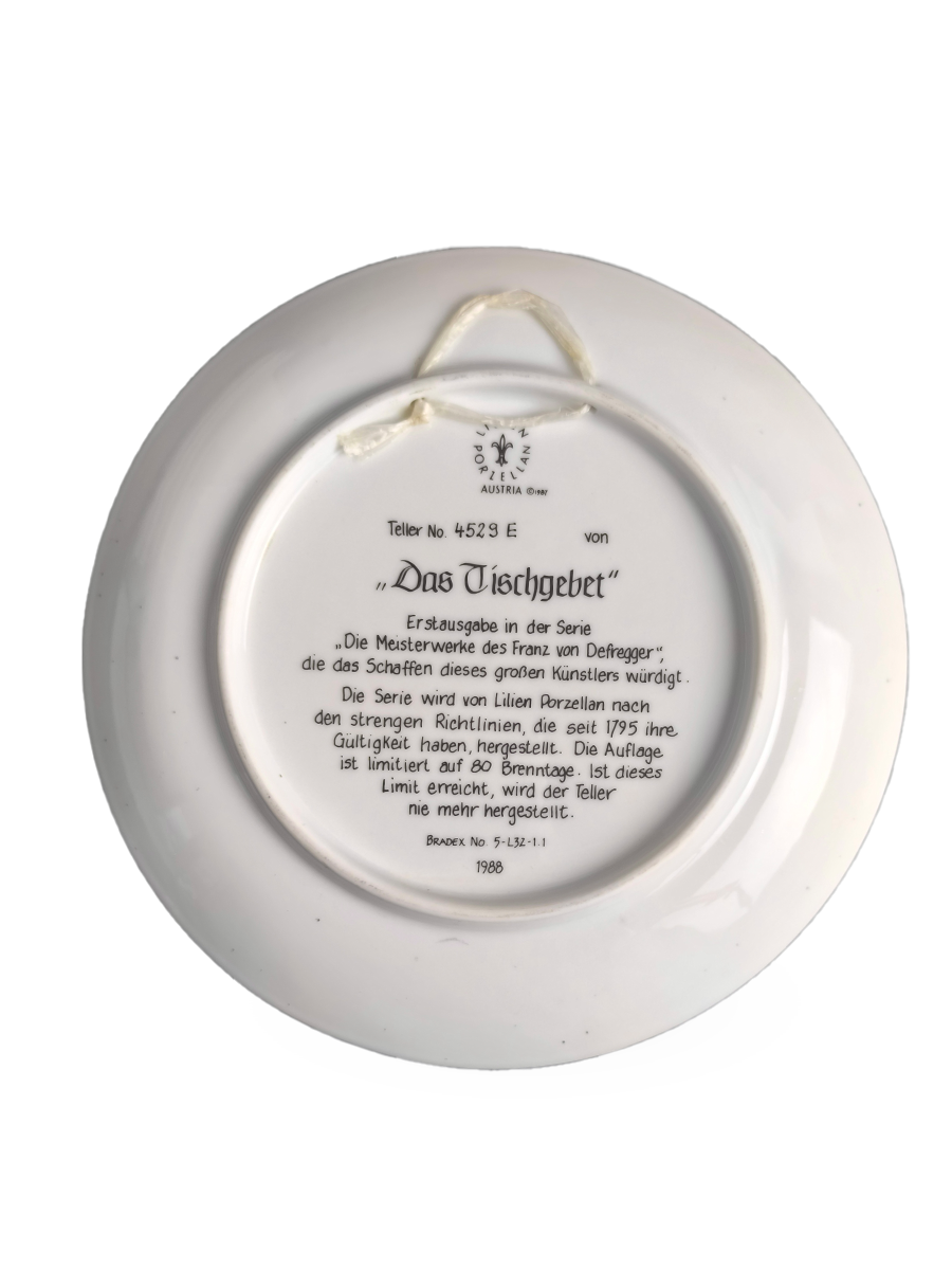 Первая тарелка из серии "Die Meisterwerke des Franz von Defregger" ("Шедевры Франца фон Дефреггера"), выпущенной ограниченным тиражом компанией Lilien Porcelain в 1988 или 1989 году.
