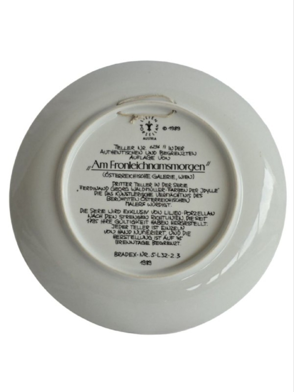 Тарелка произведена мануфактурой Lilien Porzellan или другой австрийской фабрикой, часто для Bradford Exchange (система коллекционных тарелок Bradex).