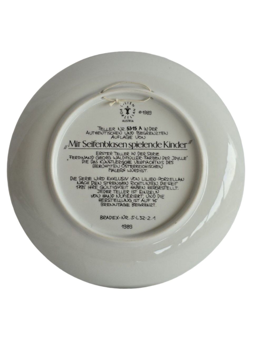 Тарелка произведена мануфактурой Lilien Porzellan или другой австрийской фабрикой, часто для Bradford Exchange (система коллекционных тарелок Bradex).