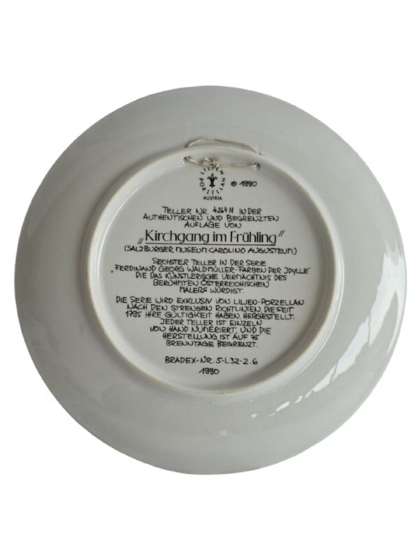 Тарелка произведена мануфактурой Lilien Porzellan или другой австрийской фабрикой, часто для Bradford Exchange (система коллекционных тарелок Bradex).