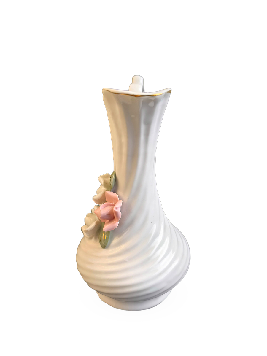Ваза изготовлена из фарфора, имеет рельефную текстуру и объемные цветочные украшения (розы).